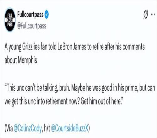 灰熊小球迷吐槽老詹:這大叔沒資格說三道四能不能讓他趕緊退役