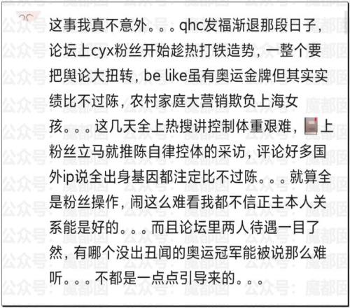 目前唯一可以確定的就是粉圈對于QHC的傷害非常大,但是到底是否有其他運動員授意或者參與目前均沒有實質(zhì)性證據(jù),希望大家不要被誤導(dǎo)。