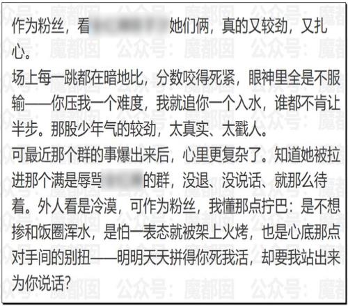 但是她切切實實遭到了體育粉圈的霸凌,這是不爭的事實,因此我們非常迫切的希望能盡快對整個體育圈的惡臭粉圈進行整治,不能再讓這股風(fēng)氣蔓延下去,那么多為國爭光的健兒卻被這些網(wǎng)絡(luò)粉圈攻擊實在是令人憤怒!