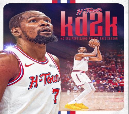 3.杜蘭特完成單賽季2000分以上,個(gè)人生涯第八次;