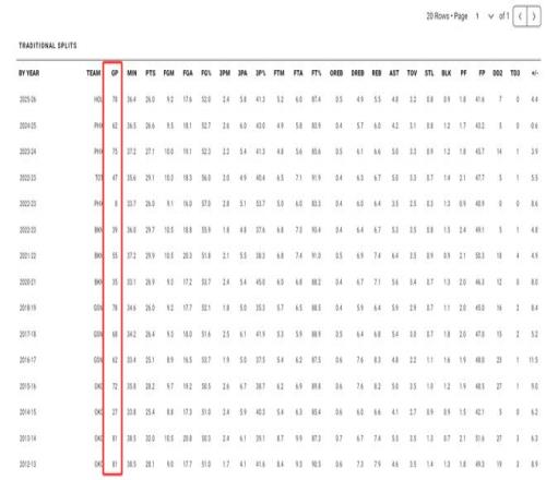 杜蘭特上一次單賽季打至少78場比賽好要追溯到17-18賽季,也就是30歲的杜蘭特,那個(gè)賽季他場均34.6分鐘,26分6.4籃板5助攻0.7搶斷1.1蓋帽,命中率52.1%,三分命中率35.3%,登場時(shí)間還不如37歲的他,效率也不如37歲的他。