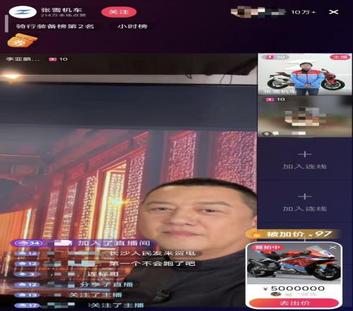 4月10日晚上8點(diǎn),中國(guó)摩托車品牌張雪機(jī)車創(chuàng)始人張雪在其直播間拍賣WSBK奪冠車820復(fù)刻車賽車,并為拍賣設(shè)置了封頂價(jià)500萬(wàn)元。按照拍賣規(guī)則,競(jìng)拍者不能一次性出價(jià)500萬(wàn),只有出價(jià)100萬(wàn)以上后一直點(diǎn),先觸達(dá)500萬(wàn)者得,有一定運(yùn)氣成分。