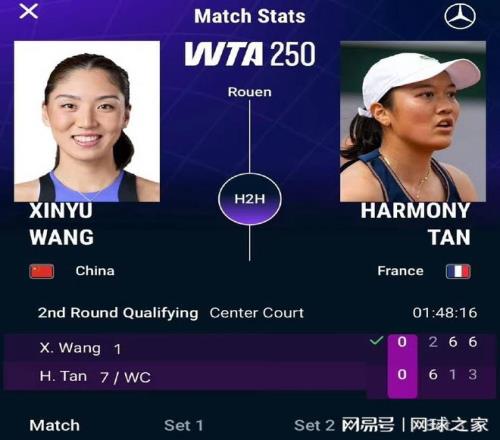 北京時間4月12日,WTA250法國魯昂站資格賽決勝輪,現(xiàn)中國一姐、世界排名第32位的王欣瑜在先失一盤的情況下及時調(diào)整,以2-6 6-1 6-3逆轉(zhuǎn)法國本土選手哈莫尼·譚,成功鎖定正賽席位。