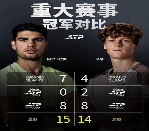 辛納將在4月13日重返 ATP排名NO.1,屆時(shí)他的第一周數(shù)將來(lái)到67周,以微弱優(yōu)勢(shì)領(lǐng)先阿爾卡拉斯的66周。