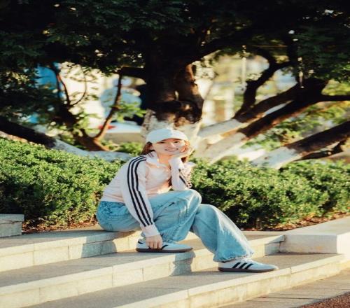 她平時(shí)很少化妝,即使化,也都是打個(gè)底那種很淡的妝。跟品牌簽約后,三葉草系列就基本滿足了她日常生活的穿著需求了,是代言品牌的忠實(shí)用戶。她平時(shí)還蠻休閑的,上半身一件開衫,很隨性的穿搭,像裙子之類是基本不穿的。最常見的裝扮就是休閑牛仔褲。