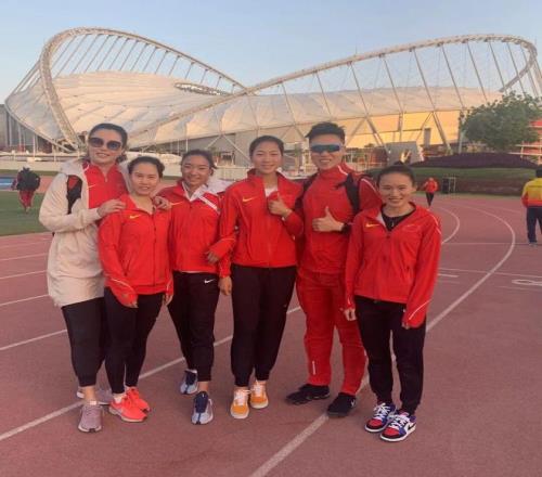 許雙雙(右1)與教練石鵬(右2)在多哈的合影