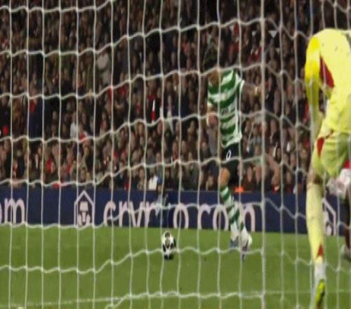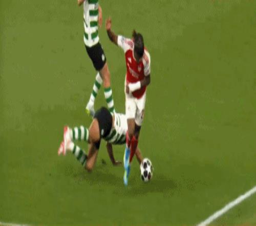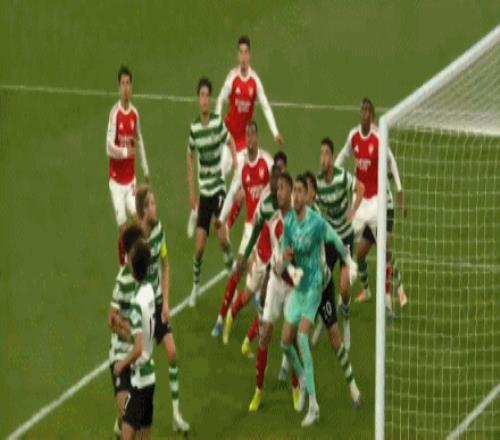 第43分鐘,葡萄牙體育隊(duì)發(fā)動(dòng)進(jìn)攻,皮球傳到禁區(qū)后點(diǎn),卡塔莫不停球直接推射,皮球擊中立柱,阿森納逃過一劫。