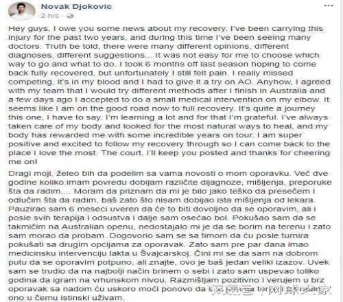 很多人只記得德約2018年溫網(wǎng)王者歸來,但很少有人記得他之前經(jīng)歷了什么。2016年法網(wǎng)實現(xiàn)全滿貫后,德約科維奇的肘傷開始爆發(fā)。2017年他早早結束賽季,但情況并未好轉,最終他在2018年下定決心根治,并在同年二月做了肘部手術。