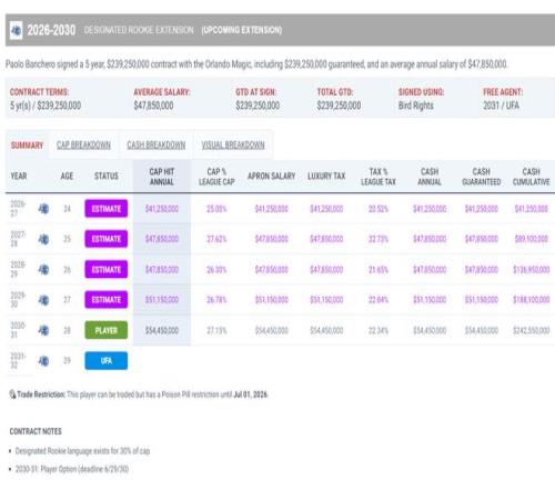 班凱羅本賽季是新秀合同的最后一年1533萬,下賽季他的薪水高達4125萬,他這位2022年的狀元秀表現是越來越差根本配不上這個級別的合同,他已經被掛上水貨狀元的標簽。