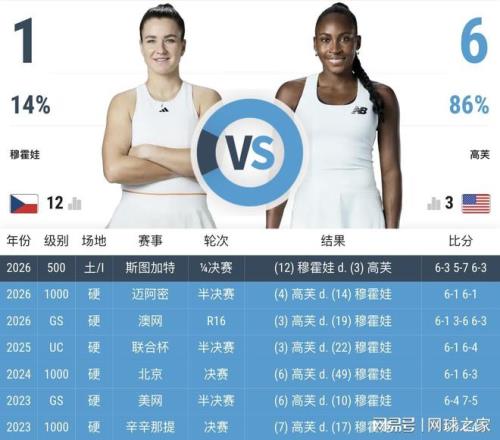 2026年斯圖加特站四分之一決賽,當(dāng)穆霍娃與高芙隔網(wǎng)相對時,幾乎所有人都認為這將是一場毫無懸念的比賽。不是輕視穆霍娃,而是數(shù)據(jù)擺在眼前——此前六次交手,穆霍娃全敗,高芙堪稱她的絕對苦主。更致命的是,這場比賽發(fā)生在高芙最擅長的紅土場,捷克姑娘似乎注定要吞下第七場敗仗。
