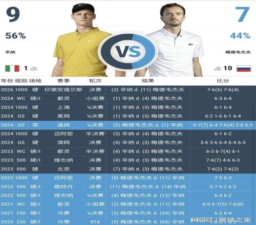 放眼國際網(wǎng)壇,這樣的例子層出不窮。李娜對佩特洛娃、科貝爾對阿扎倫卡、鮑利尼對斯瓦泰克、帕芙柳琴科娃對普利斯科娃……,甚至跨越時代,格拉芙對埃弗特的交手史中也能找到這條定律的影子。令人驚訝的是,這條定律并非女子網(wǎng)壇專屬——ATP賽場上,辛納對梅德韋杰夫的翻身,同樣遵循著“0-6”的劇本。