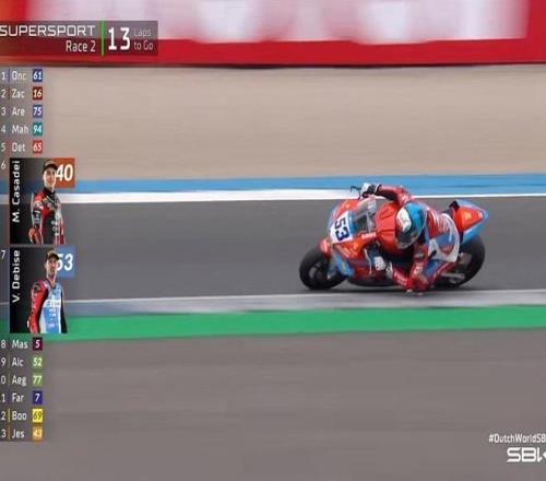 WSBK荷蘭站的比賽從4月17日到19日,共舉行3天。在4月17日超級(jí)桿位賽中,張雪機(jī)車的53號(hào)車手瓦倫丁·德比斯取得第二名的成績(jī),因此在4月18日的正賽時(shí)于前排發(fā)車。4月18日的第一回合正賽中,張雪機(jī)車53號(hào)車手因最后一圈在17號(hào)彎沖入緩沖區(qū),超出賽道限制而被罰,最終獲得第四名。