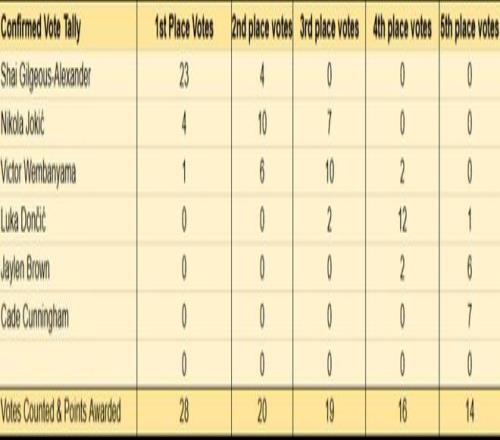 作為最重磅的獎(jiǎng)項(xiàng),常規(guī)賽MVP的歸屬懸念不大,已經(jīng)揭曉的28位投票者,亞歷山大得到23張第一選票,約基奇得到4張,文班亞馬只有1張。亞歷山大預(yù)計(jì)能蟬聯(lián)這一獎(jiǎng)項(xiàng)。
