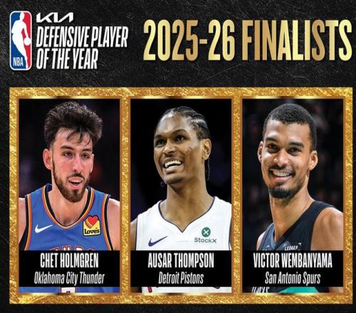 NBA季后賽正在如火如荼地進(jìn)行當(dāng)中,常規(guī)賽各大獎(jiǎng)項(xiàng)也在陸續(xù)揭曉。按照NBA聯(lián)盟官方的安排,第一個(gè)要揭曉的獎(jiǎng)項(xiàng)是年度最佳防守球員。此前,聯(lián)盟已經(jīng)率先公布了三位DPOY候選人名單,他們分別是馬刺隊(duì)中鋒文班亞馬、活塞隊(duì)前鋒奧薩爾湯普森和雷霆隊(duì)中鋒切特。那么,誰(shuí)能成為最后的贏家呢?咱們一起來(lái)看看。