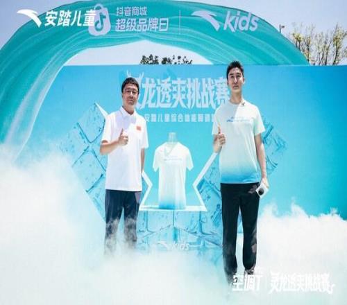 奧運(yùn)冠軍武大靖以"安踏兒童成長(zhǎng)大使"的身份再次到場(chǎng),這已是他見(jiàn)證空調(diào)T產(chǎn)品升級(jí)的第二年。發(fā)布儀式上,武大靖與安踏兒童品牌市場(chǎng)總監(jiān)初帥共同揮錘擊碎模擬冰塊裝置,搭載A-ICETECH冰感科技的安踏兒童空調(diào)T正式亮相。